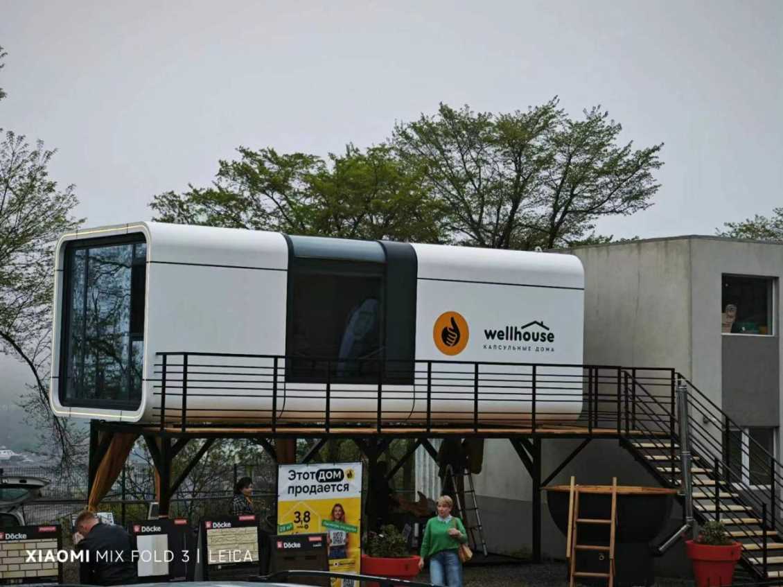 太空舱 N28 以 “极端气候适应性与居住舒适度平衡” 为设计灵感,深度贴合俄罗斯寒冷多风的地域特征。用方正规整的轮廓适配多样场地,以圆角线条柔化硬朗外观,再通过小窗户、厚墙壁的定制化设计,搭配高品质保温隔音材质,打造 “无惧严寒、温暖如家” 的科技旅居空间。