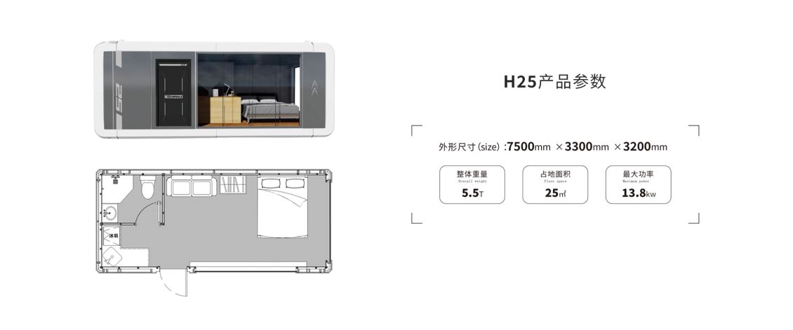 占地与室内空间均达 25㎡,核心采用 “一室一卫” 布局,相比H18 大幅拓宽活动区域,打造无局促感的大开间体验。